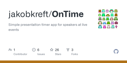 jak0b@lemmy.ml · 21 days agoFoss - OnTime: Presentation timer app for speakers at live eventsplus-squaregithub.comexternal-linkmessage-square3linkfedilinkarrow-up139arrow-down10