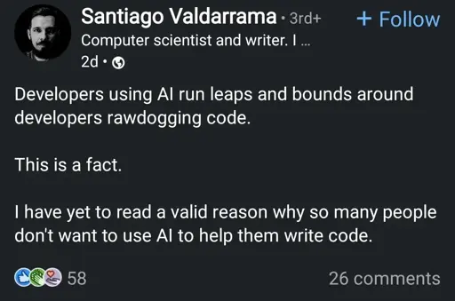 Additionally, do you remember the study that showed that AI-generated code is 40% (not sure about the figure) likely to be buggy? Because I do.