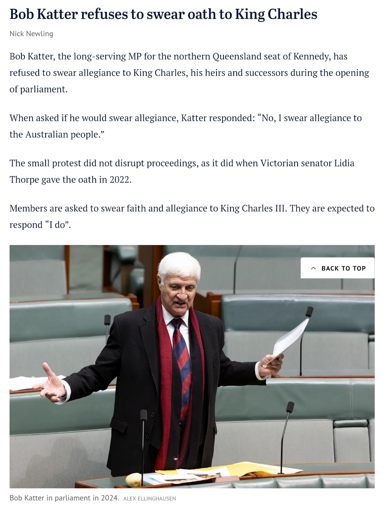 When asked if he would swear allegiance, Katter responded: “No, I swear allegiance to the Australian people.”