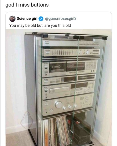 I was 4 years old, listening to a record on headphones connected to this rig. Leaned too far back, and caught the 1/4 inch input jack on the headphones right in my fucking eyeball.