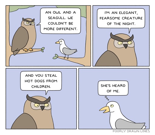 Otter Raft@lemmy.ca to Comic Strips@lemmy.worldEnglish · 2 months agoOwl and Seagull | Poorly Drawn Linespoorlydrawnlines.comimagemessage-square22linkfedilinkarrow-up1499arrow-down12file-textcross-posted to: gullfriends@lemmings.worldsuperbowl@lemmy.world
