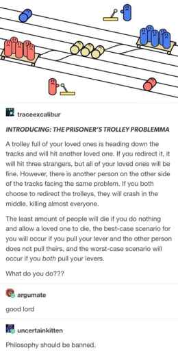 arrow-up1272arrow-down1imageThe Prisoner's Trolley Problemmamidwest.socialSnokenKeekaGuard@lemmy.dbzer0.com to General Memes & Private Chuckle@lemmy.dbzer0.com · 1 month agomessage-square39linkfedilinkfile-textcross-posted to: trolley_memes@lemmy.mllemmyshitpost@lemmy.world