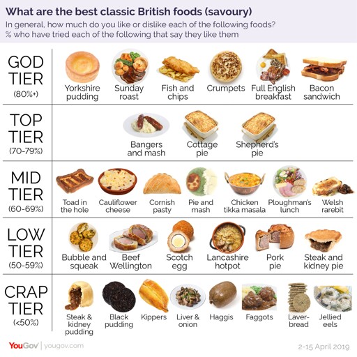 After years hearing about how awful haggis is, I’ve been very pleasantly surprised when I finally got to taste it earlier this year. It tastes like mutton, which I love, and the oats give it a very pleasant texture. Definitely in my top tier of British food