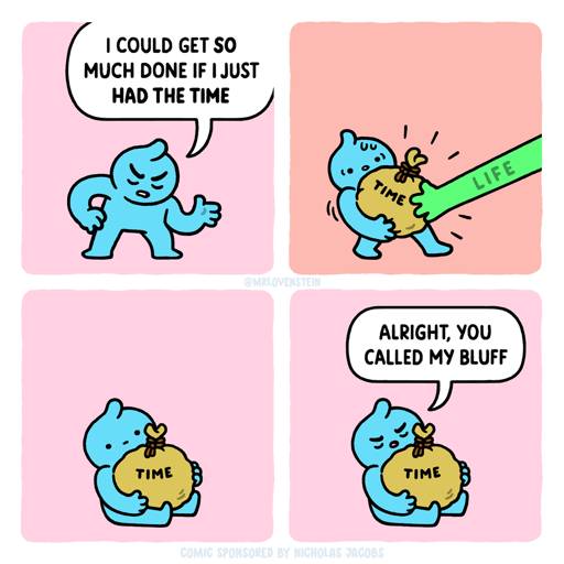 minus-squareAnh Kagilinkfedilinkarrow-up12·2 months agoI could get so much done if I just had the time. please