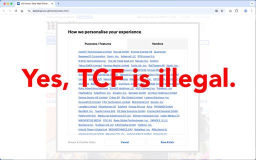 Exactly. So many companies wanted to make it look like “this annoying popup is here because of EU. We want to offer you a big fat ALLOW ALL to make it simple for you… Don’t mind what it means… If you wanna know you are welcome to read this bullshit generic law text that probably has mistakes in it but you wouldn’t know because you just want to read some small text snippet here and don’t want to get into it”.