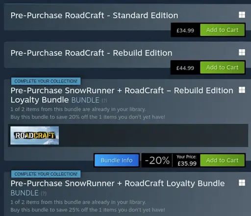 That’s just how Steam bundles work. It decreases the cost by the undiscounted price of the parts you own to some minimum (I think it’s £1). Most likely they only thought as far as bundling the Rebuild edition and SnowRunner and giving it a cost of £60 and didn’t consider this.