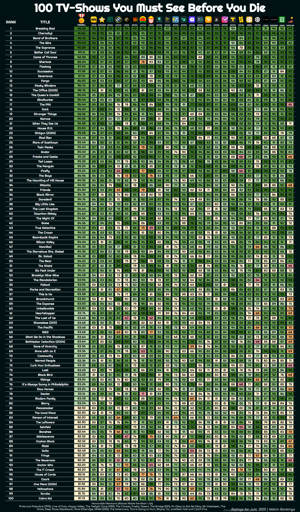 I’m surprised by how many shows I’ve heard about while knowing nothing about them. I’ve seen maybe 10 of these shows but I’ve heard about more than half