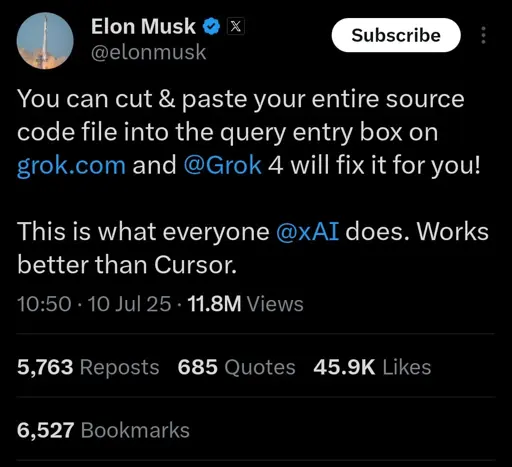 Obviously, because you need to empty your “source code file” to make room for Grok’s corrected code.