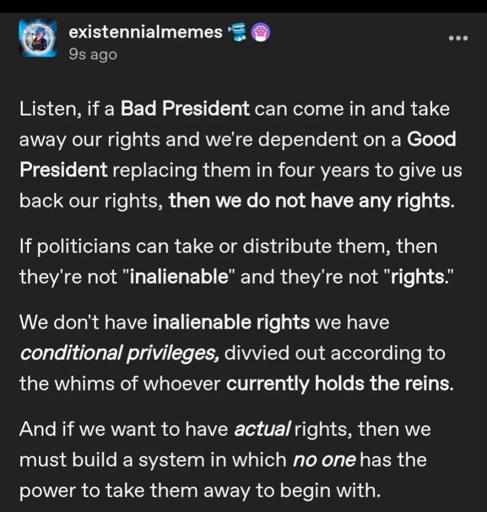 Just showing how silly it is that “rights” need to be forever in any capacity. I think most here get that though.