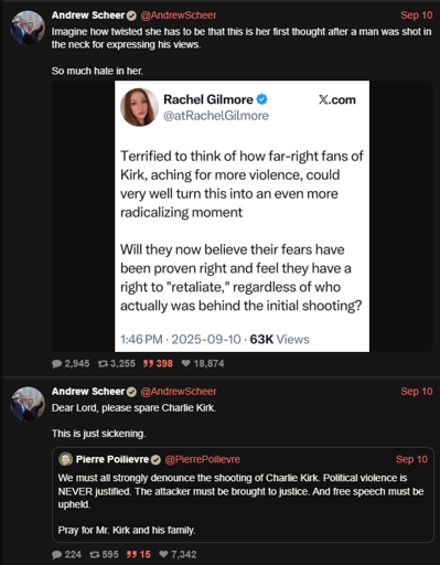 https://xcancel.com/AndrewScheer/status/1965880154175189241#m <-- This one has already led to death threats for Rachel