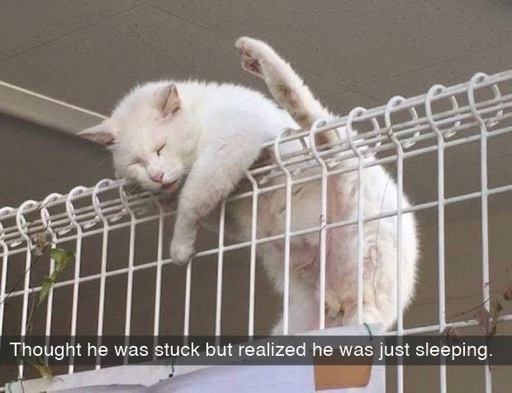 Hmm. A bit of stretching might feel nice. Work that leg! Oh, and napping! Napping is super great. This is awesome. I think I’ll just hang here and wait for Miss Servant to bring me some noms (presumably).