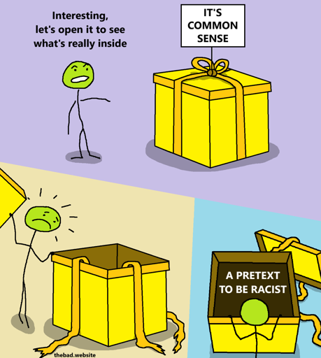 I know this is just thebad.website comic, but I’m genuinely curious (and an idiot) to know what the connection is with generally racist-inclined folk love for saying that everything is common sense. What makes them think in this way?