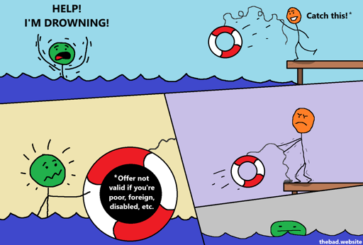 - Offer not valid if you’re poor, foreign, disabled, etc.