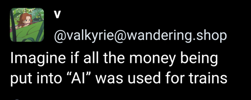 io@piefed.blahaj.zone to Microblog Memes@lemmy.worldEnglish · 7 days agoTrains 🤧piefed.cdn.blahaj.zoneimagemessage-square113linkfedilinkarrow-up11.28Karrow-down19file-text