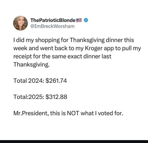 You’re assuming “knowingly”. Trump told people tariffs were going to lower costs, falsely claiming that the foreign countries would be picking up that tab. If person X doesn’t independently know/learn that tariffs basically never work that way, then the OP reaction makes perfect sense.