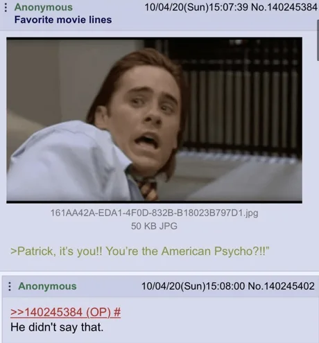 And then he said “It’s psycho time”, then proceeded to psycho all over him.