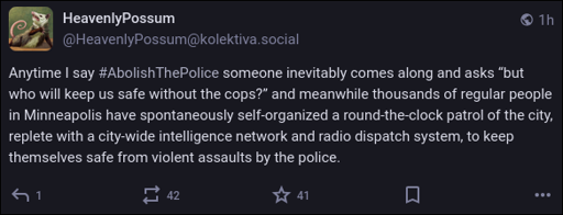 I don’t understand. You mean by replacing the current police force with a vigilante force? All the image says is that regular people have come out to protect people from ICE and suggests that this type of force can replace the police.