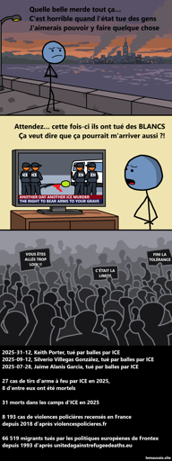 [le même personnage est maintenant devant sa TV, qui montre des agents d’ICE entourant un cadavre]