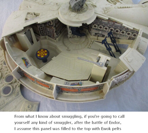 From what I know about smuggling, if you’re going to call yourself any kind of smuggler, after the battle of Endor, I assume this panel was filled to the top with Ewok pelts
