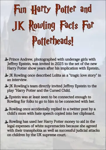 minus-squarebirdwing@lemmy.blahaj.zonelinkfedilinkEnglisharrow-up2·15 days agoDon’t remind me of that work. Somehow the witch managed to produce a work rivalling the terribilit of her transphobia.