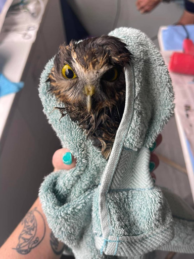 We had a Morepork come in today who was covered in the seeds and sap of the dreaded Parapara tree or ‘bird catching tree’ as it’s also called, and for a good reason!