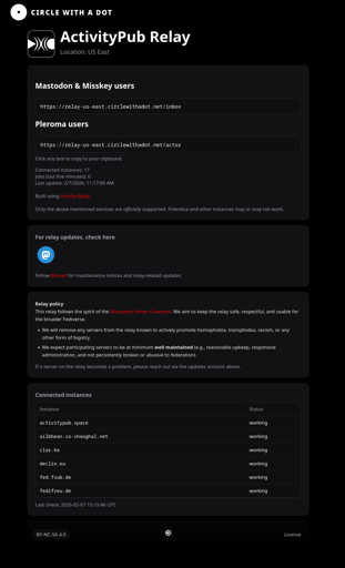 1·5 months agoI believe that was you that was auto-rejected again. Pushed one more fix to the relay image and relaunched. if you’d be so kind to try once more, but if I see the error again I’m going to open an issue on the repo.